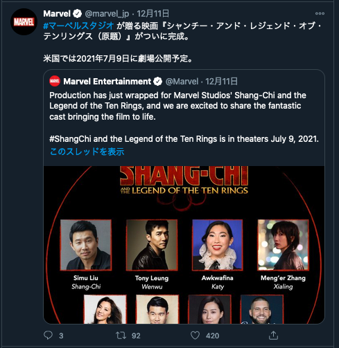 前記事で書いた”ディズニー・インベスター・デイ 2020”で、マーベル・シネマスティック・ユニバース(MCU)の作品の発表もありました。