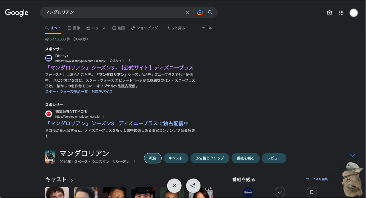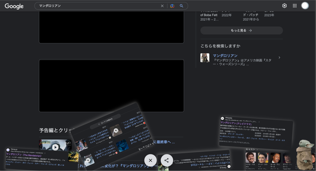 ちなみに今Googleでマンダロリアンを検索すると↑、右下にグローグーが!