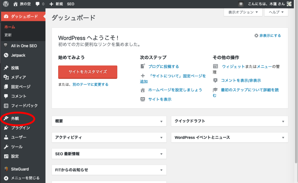 子テーマがあるのは、カスタマイズする際に親テーマをいじるとアップデートした際などにファイルが上書きされて元に戻ってしまったりするからだとか。(実はよく分かっていない^^;)子テーマがある場合は子テーマを有効化。これでテーマが決まりました。