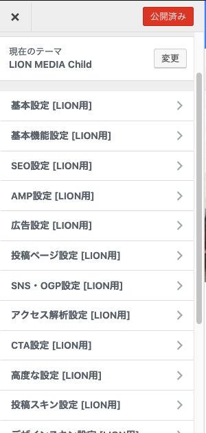 自分はテーマを”LION MEDIA”に決めると直ぐ、”LION MEDIA”の設定方法で検索して一気に設定しましたけど、カスタマイズは後からでも良いと思います。