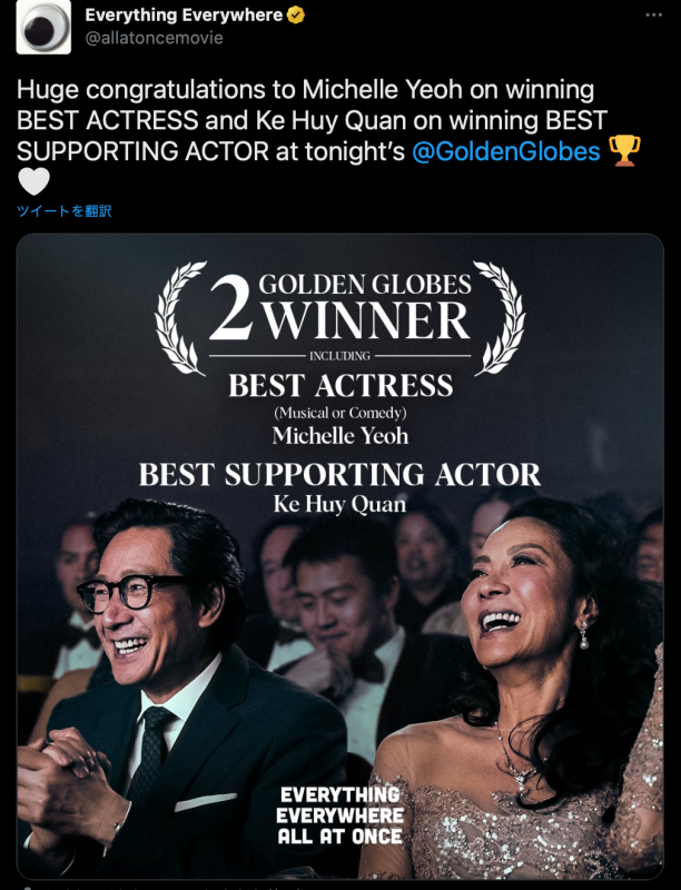 いつの間にかゴールデングローブ賞の時期となり、サクッと終わってましたね。