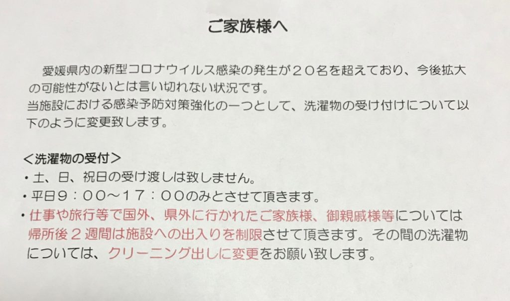 3月から面会禁止になったので、洗濯物の回収は父に任せてしばらく訪問していませんでした。