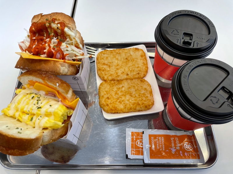 後はコンビニCUで残ったウォンを使い、余りは空港の募金箱へ。