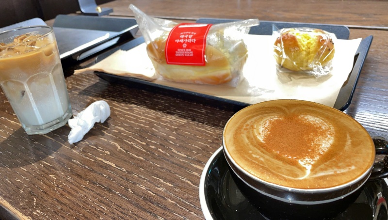 お腹も空いているので、座れそうなカフェでパンとコーヒー。