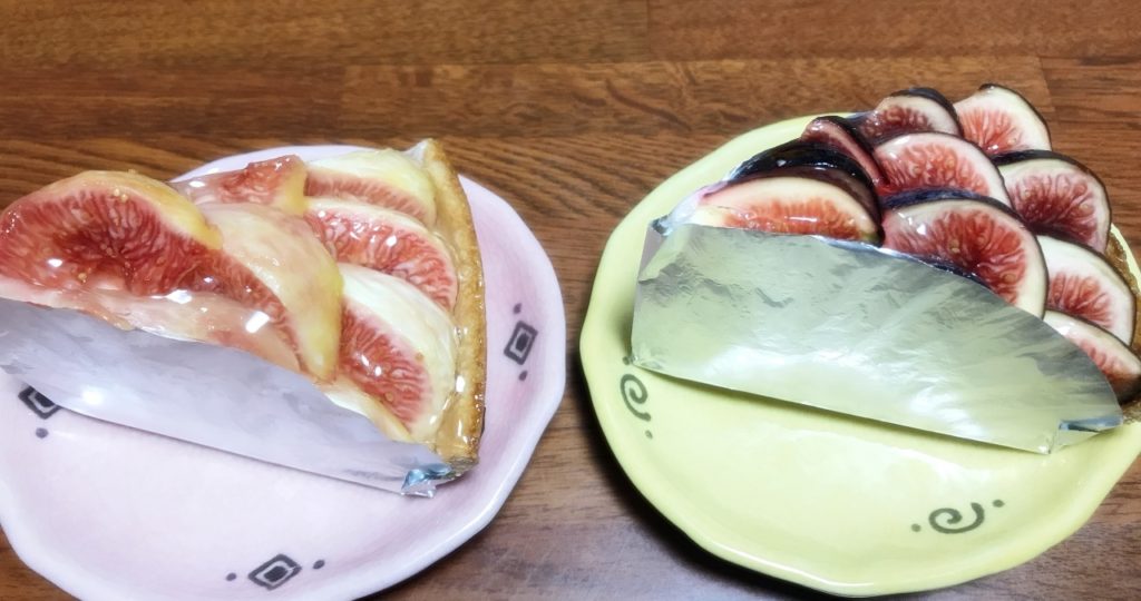 隣接のカフェでイチジクのケーキを見つけて持ち帰り〜!